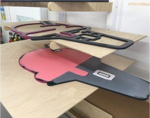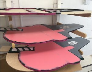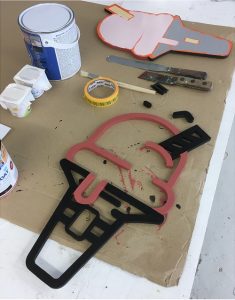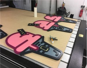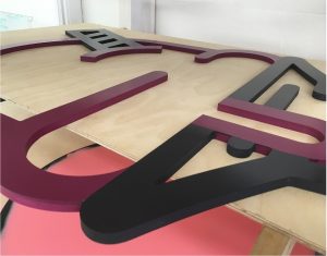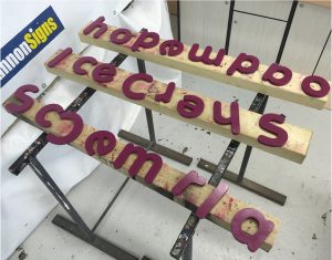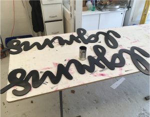 Some of the 3D routed lettering being painted.