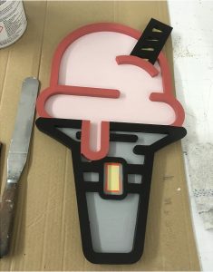 3D routed logo for Pilgrims Ice Cream Shop.
